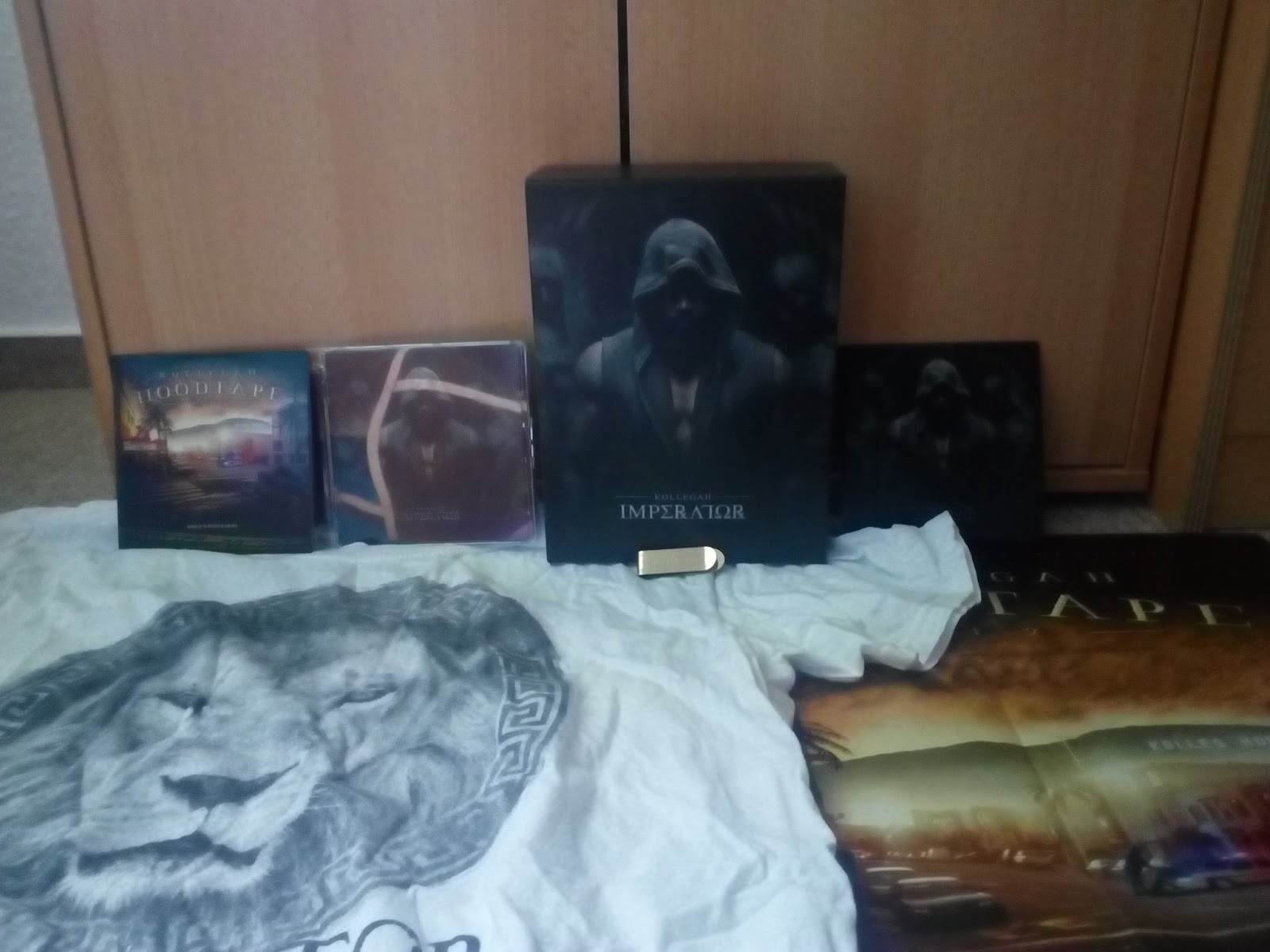 Die Box hat 39,99€ gekostet. Das Album ist im Super Jewel Case und das Hoodtape 2/Instrumentals sind in einer Papphüllen, was schade ist. Papphüllen sieht man fast gar nicht im Regal. Die Geldklammer ist hochwertig. Das T-Shirt hat ein gutes Design und ist wohl Größe XL. Das Doppelposter hat die beiden Cover drauf.